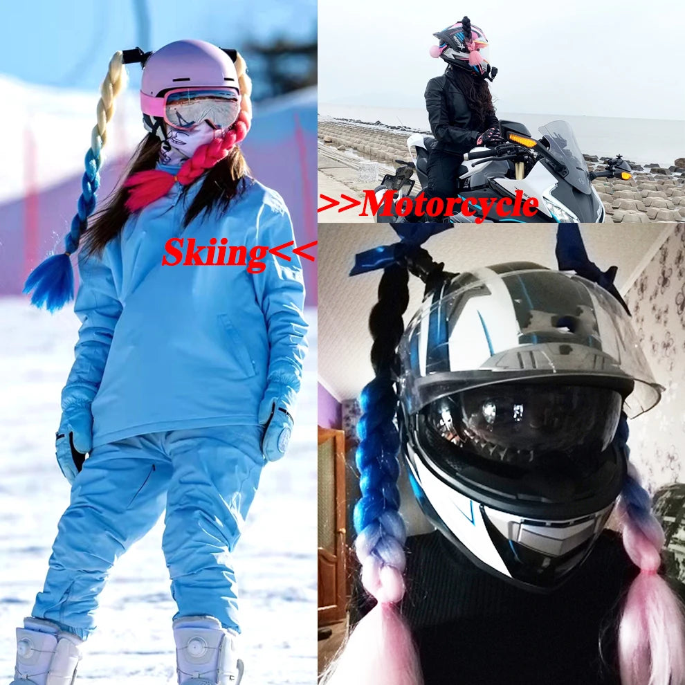 2pcs/pair New Motorcycle Helmet Braids Woman Braids Wig For Motorbike Helmets 164 colors Twist Dual Pigtail Ponytail With Sucker