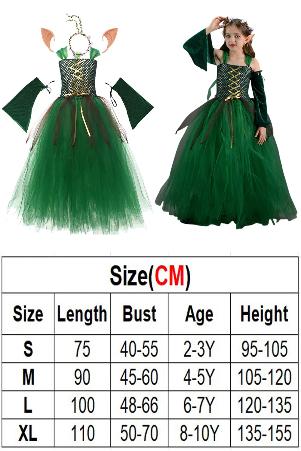 Kids Girls Elf Cosplay Tutu Dance Skirts Costume Children Roleplay Dress Up Performence Stage Dress Elf Earrings Halloween Cloth